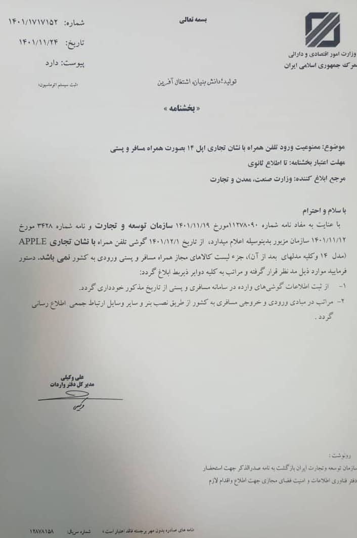 توجه داشته باشید که گوشی آیفون ۱۴ و مدلهای بعد از آن، از تاریخ ۲۴ بهمن ۱۴۰۱ بر اساس نامه گمرک رجیستری نمیشود. اگر تجربه ای از رجیستر گوشی در فرودگاههای ایران دارید، حتما با ما درمیان بگذارید.